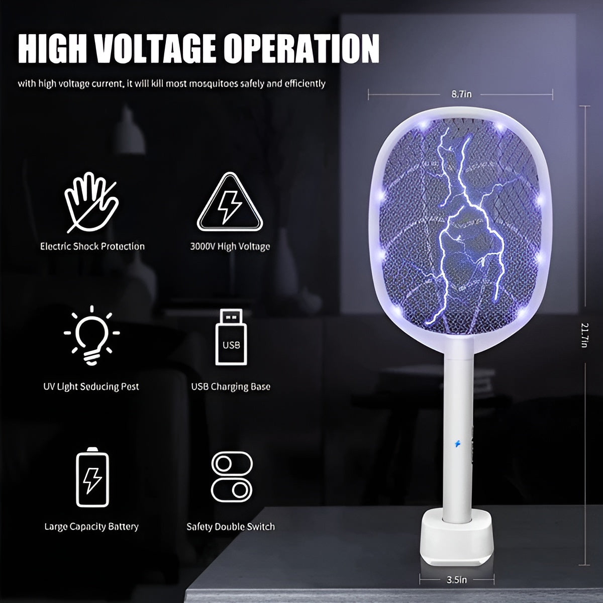 Dual Functionality : Combines traditional zapper racket and UV light technology for more effective insect elimination.